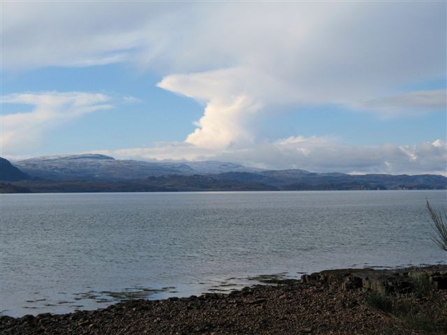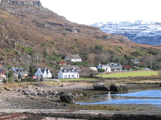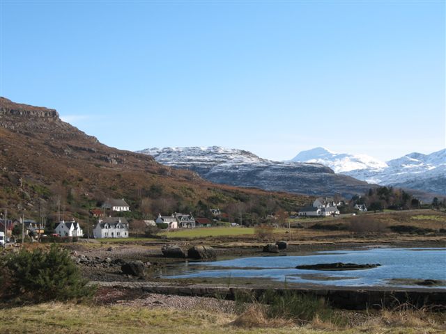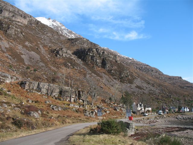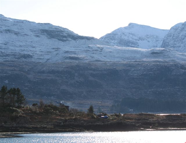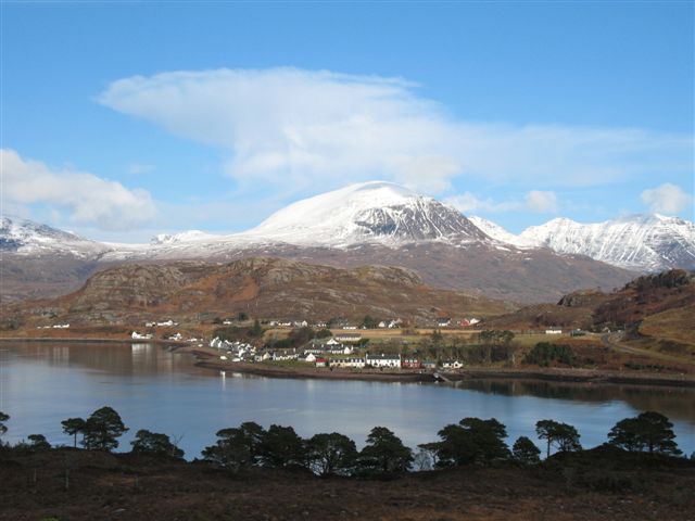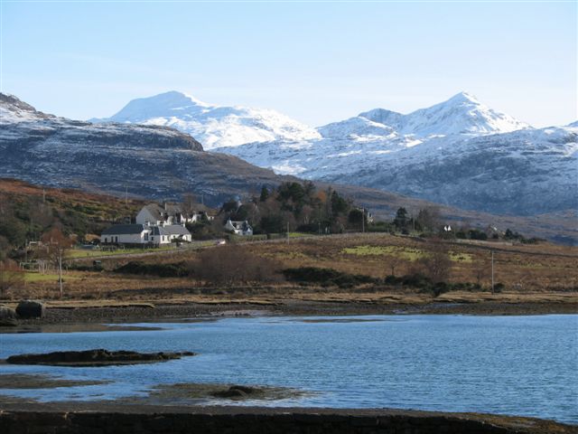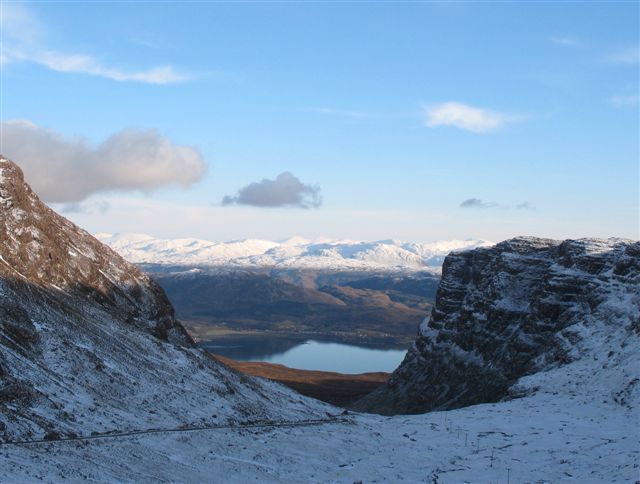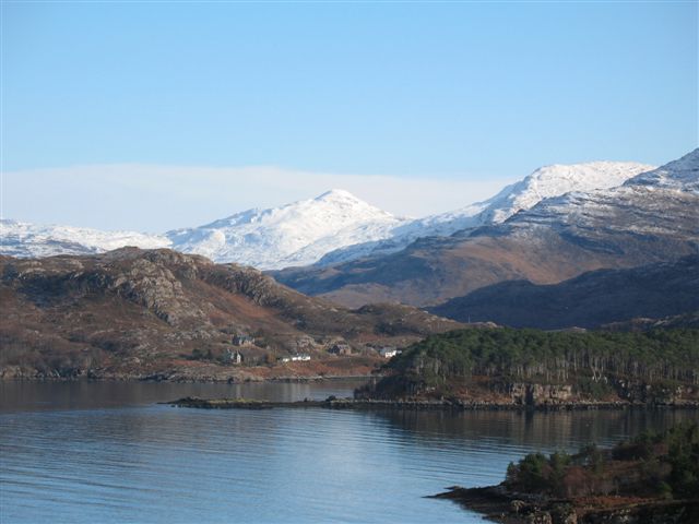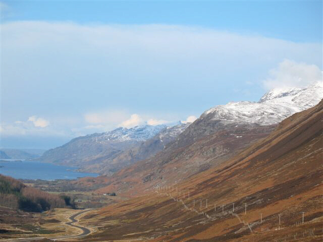 From the summit the road switchbacks down to sea level at Loch Kishorn . . .